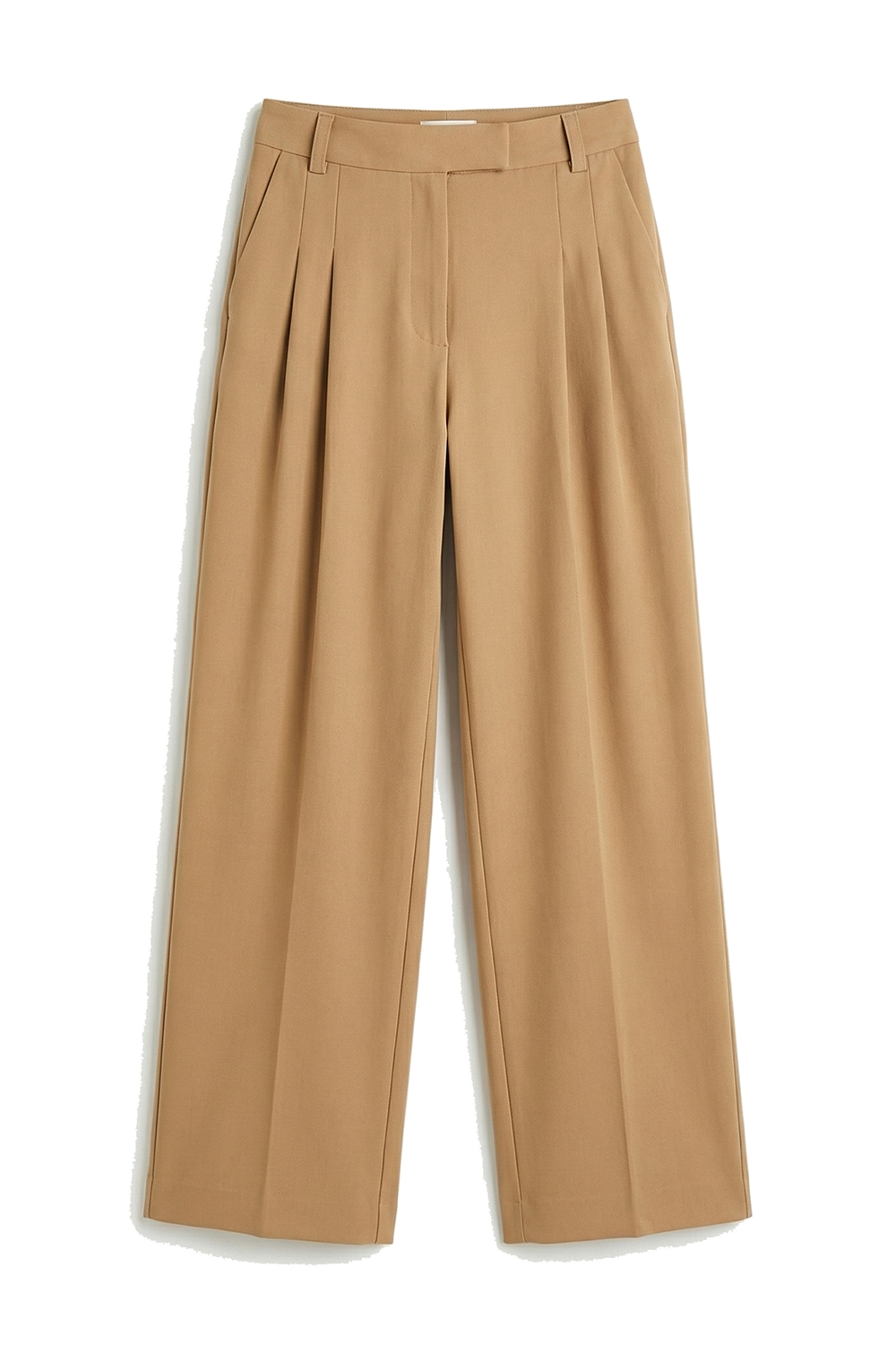Wide leg trouser with a relaxed, tailored feel. Designed with a flat front, soft pleats, side pockets, and belt loops, with an elasticated back waistband for ease. Finished with a welt back pocket and full length drape.