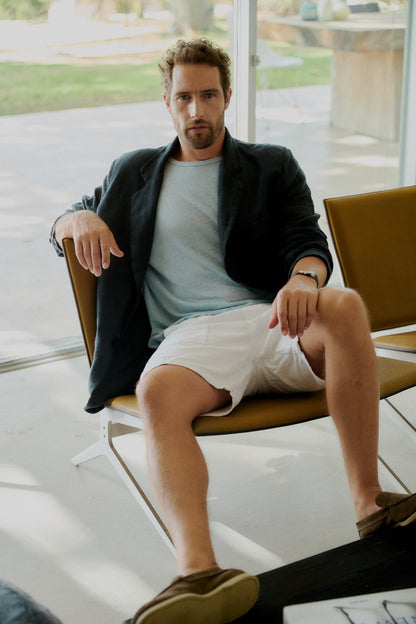 Relaxed drawstring shorts made from soft, garment-washed cotton & Tencel blend. Designed with an elastic waistband, adjustable ties, and oversized front patch pockets for easy, everyday comfort.