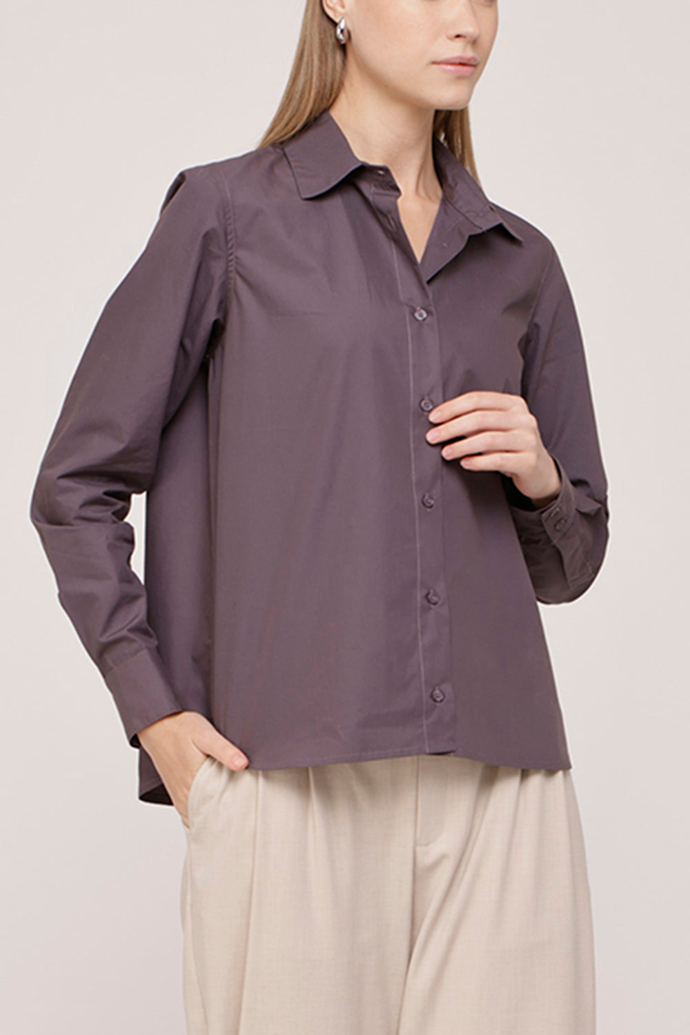 Classic button down shirt cut from crisp woven cotton. Designed with a pointed collar, full button closure, long sleeves with structured cuffs, and a relaxed straight fit for an easy polished look.